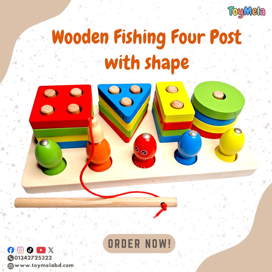 Turn learning into fun with our Fishing Four Post With Shape set! This interactive educational toy combines shape sorting, color recognition, and magnetic fishing—making it an exciting playtime favorite for toddlers aged 2+ years.