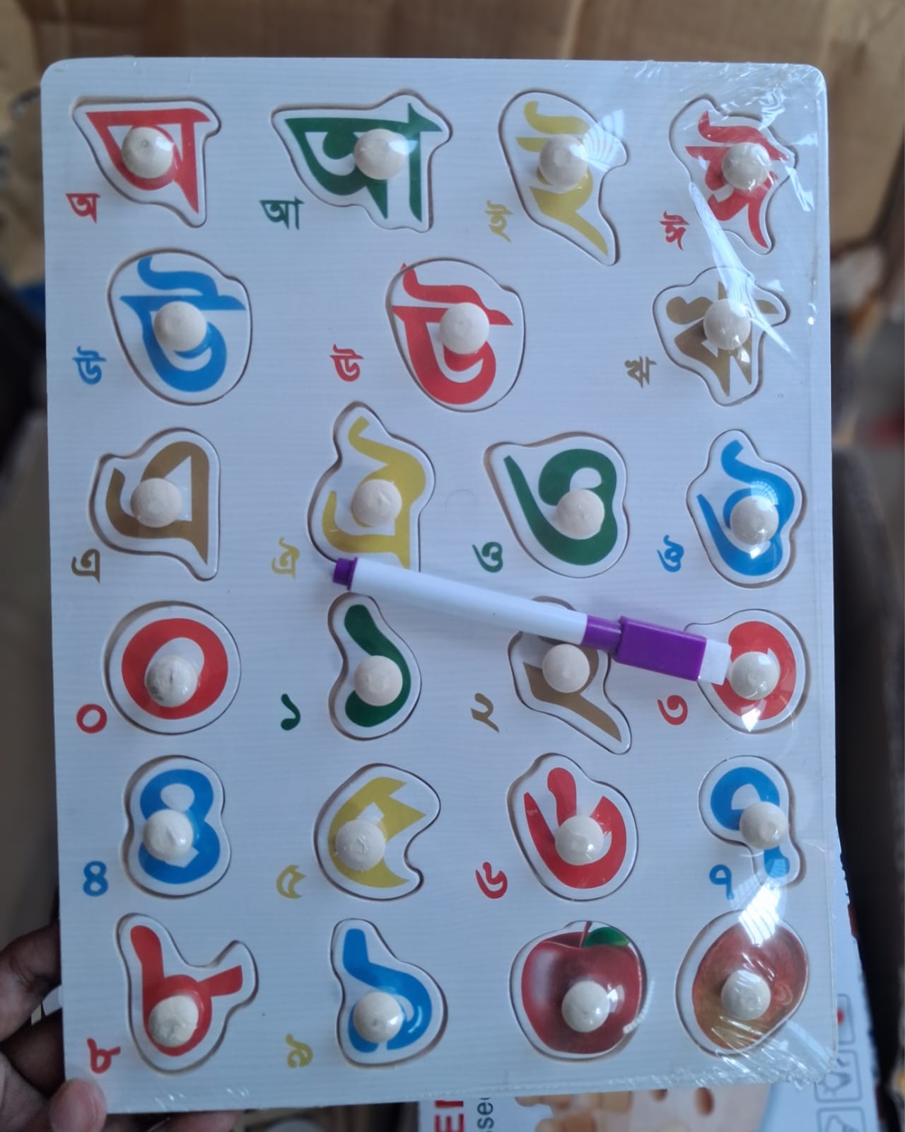 কাঠের পেগ – প্রতিটি অক্ষর সহজে তোলা ও বসানো যায়
